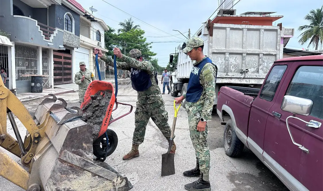 Destacó que el Plan Marina, en su fase de recuperación, tiene como objetivo principal restablecer las condiciones básicas de vida y servicios en las zonas afectadas, así como apoyar en la limpieza, rehabilitación y reconstrucción de áreas públicas y viviendas dañadas, en coordinación con autoridades de los tres órdenes de gobierno.