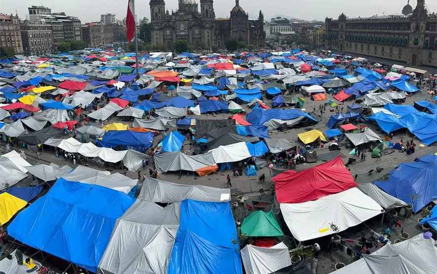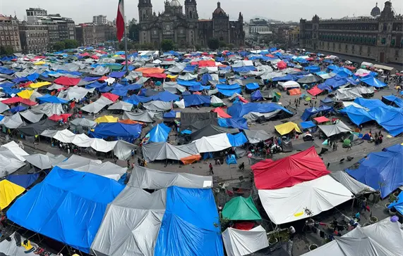 Los docentes también mantienen un plantón que ocupa la plancha del Zócalo y calles aledañas.