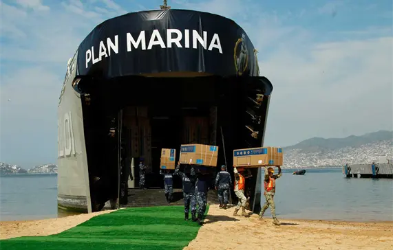 Aseguró que los enseres llegan en contenedores al puerto de Lázaro Cárdenas, Michoacán, siendo trasladados por vía marítima en buques de la Secretaría de Marina (Semar), y por tierra en camiones de la Defensa, para después ser entregados a los damnificados.