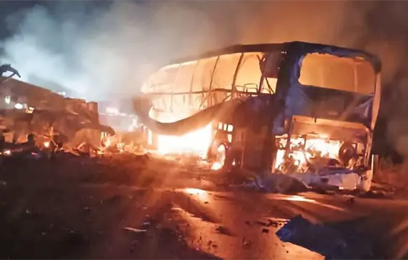 Presuntamente el tráiler invadió el carril del autobús y se impactaron de frente, lo que provocó que el autobús se prendiera en llamas que se esparcieron rápidamente, por lo que algunos pasajeros rompieron las ventanas traseras del vehículo y lograron escapar, aunque ya con quemaduras y heridas.