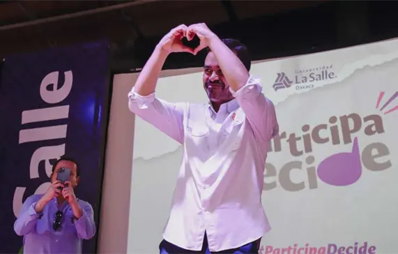 “Si yo gano el 2 de junio, el 3 de junio no va a aparecer pacificado el país. No van a decir los criminales: ‘no, pues ya ganó este cuate, ya’. La lógica, lo que tenemos que impulsar es, no confíes en un político; confía en ti, confía en tu capacidad de análisis, en tu capacidad de comparación, de contraste, en tu capacidad de organización con tu comunidad y en que tú puedes ser parte de un proceso social que cambie las cosas en México”, explicó a los alumnos de la Universidad La Salle, campus Oaxaca.