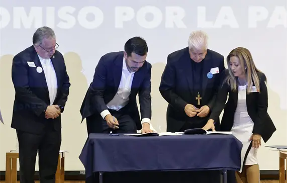 En la firma del “Compromiso por la Paz2, de la Conferencia del Episcopado Mexicano (CEM), Jorge Álvarez Máynez presentó los cinco puntos de su Plan Nacional de Pacificación para implementarlo como presidente de la República.