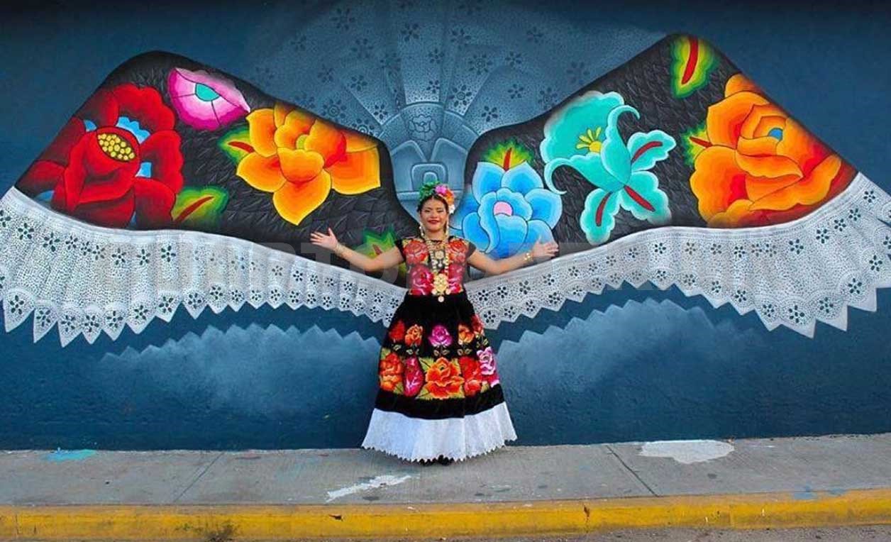 Junto a una mesa de madera que sostiene dos peroles y tres palanganas rebosantes de arroz, frijoles, chiles rellenos y piezas de pollo empanizado, con el mandil en el pecho, Guadalupe Vásquez Felipe quedó inmortalizada en el mural de su vivienda ubicada en la colonia popular Colosio, en el norte de esta ciudad zapoteca.