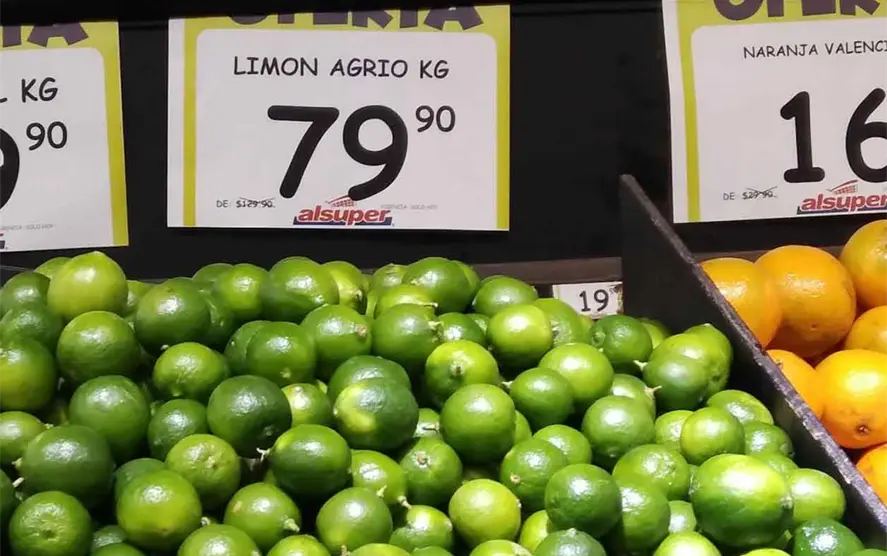 El limón persa alcanzó un promedio de 60.44 pesos y llegó a costar hasta 79.90 pesos en la última semana, señalan datos de la Profeco.