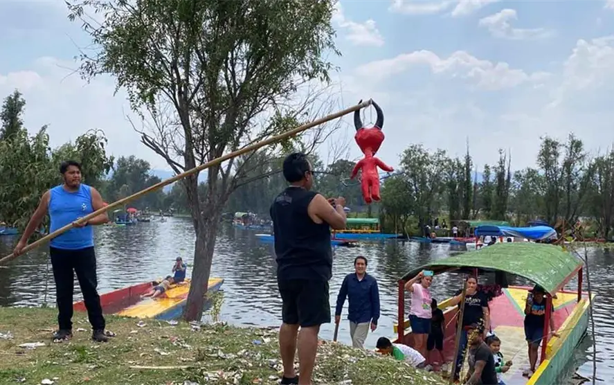 Queman Judas en canales de Xochimilco