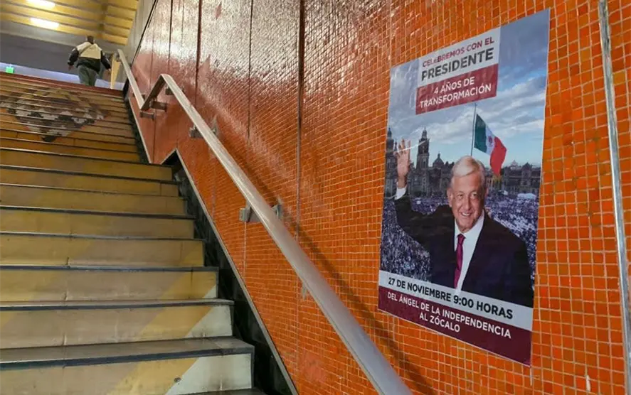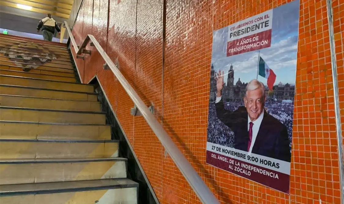 “Hay mucha gente que quiere apoyar al presidente, son cuatro años de transformación, cuatro años de que no domina la oligarquía en México, pues hay mucha gente que quiere celebrar y acompañar al presidente el próximo domingo y seguramente, pues, está convocando”, apuntó el dirigente de Morena.Piden al Metro CDMX quitar propagandaDiputados locales del PAN solicitaron al director general del Metro, Guillermo Calderón, retirar la publicidad de Morena en donde se invita a marchar el próximo domingo, ya que esto, dijeron, es un delito electoral por una posible promoción personalizada innecesaria.