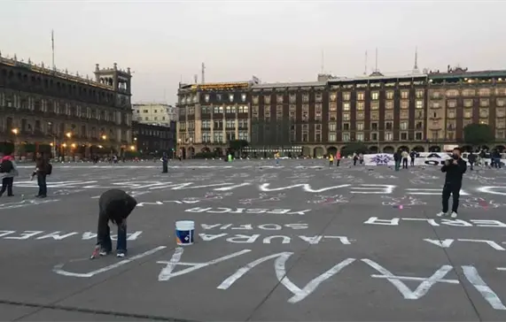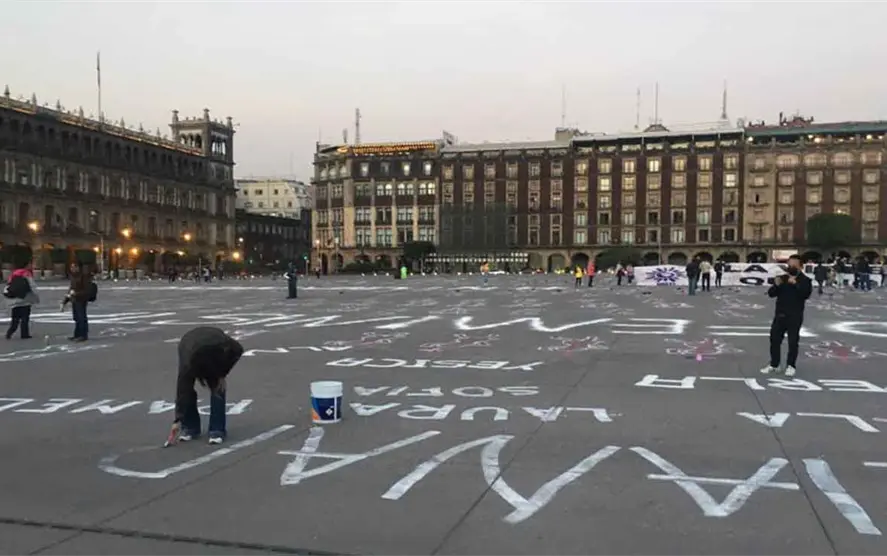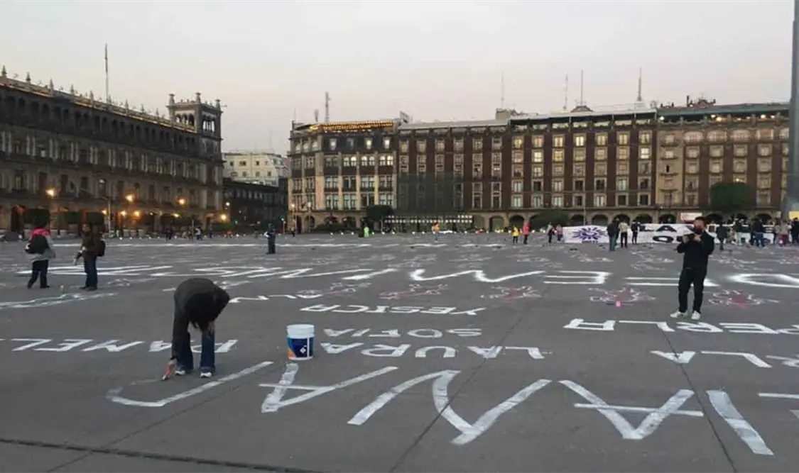 De manera pacífica lanzaron consignas, colocaron zapatos y nombres de mujeres en la plancha del zócalo capitalino como una forma de recordar la memoria de todas las niñas y mujeres víctimas de la violencia.