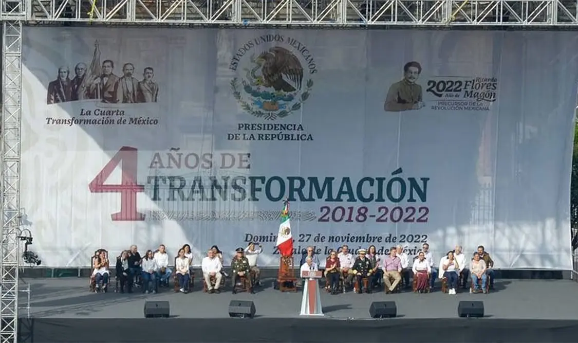 Tras más de cinco horas de haber iniciado la marcha para celebrar cuatro años de gobierno, por fin el presidente Andrés Manuel López Obrador llegó al Zócalo donde dio un informe ante los presentes.