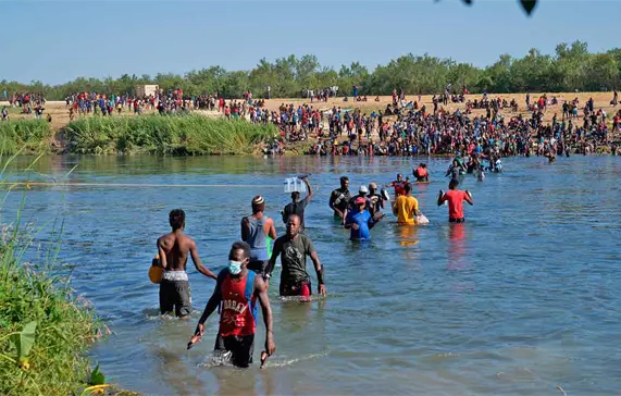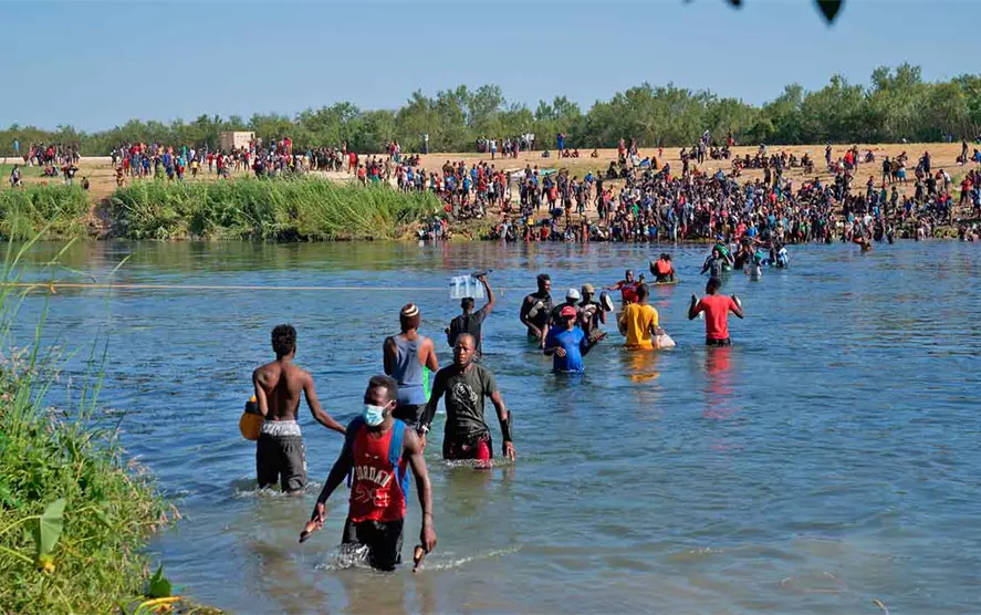 Pese a que autoridades de Estados Unidos sellaron el cruce en la frontera entre Acuña, Coahuila, y Del Río, Texas, por la parte de la cortina del río Bravo, los migrantes, principalmente haitianos, encontraron otro lugar por donde pasar a Estados Unidos y regresar a territorio mexicano para la compra de víveres.