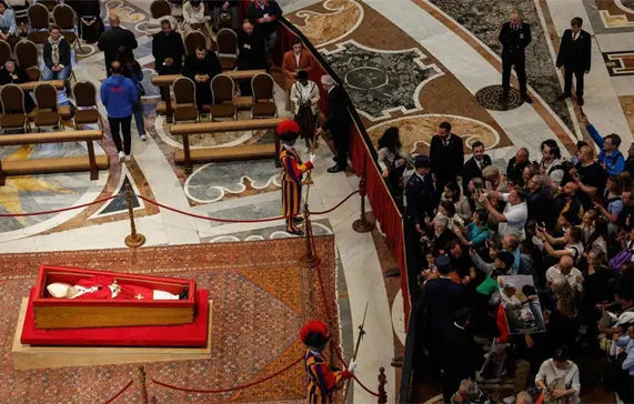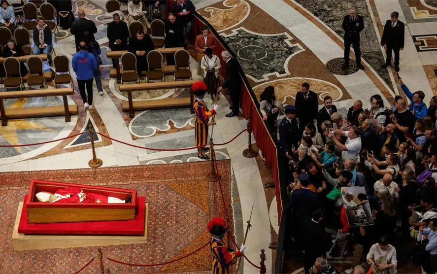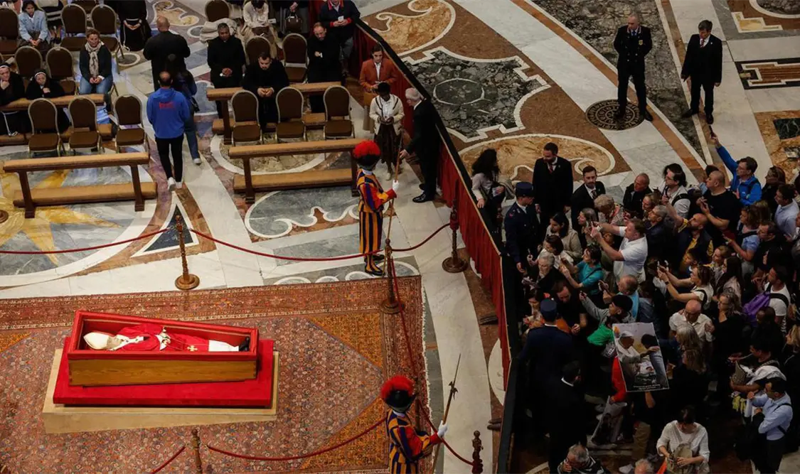 El féretro del papa Francisco, llevado en procesión a hombros por los ‘sediarios’ pontificios y escoltado por la Guardia Suiza, llegó a la Basílica de San Pedro, donde fue ubicado frente al Altar de la Confesión para que los fieles puedan darle el último adiós.