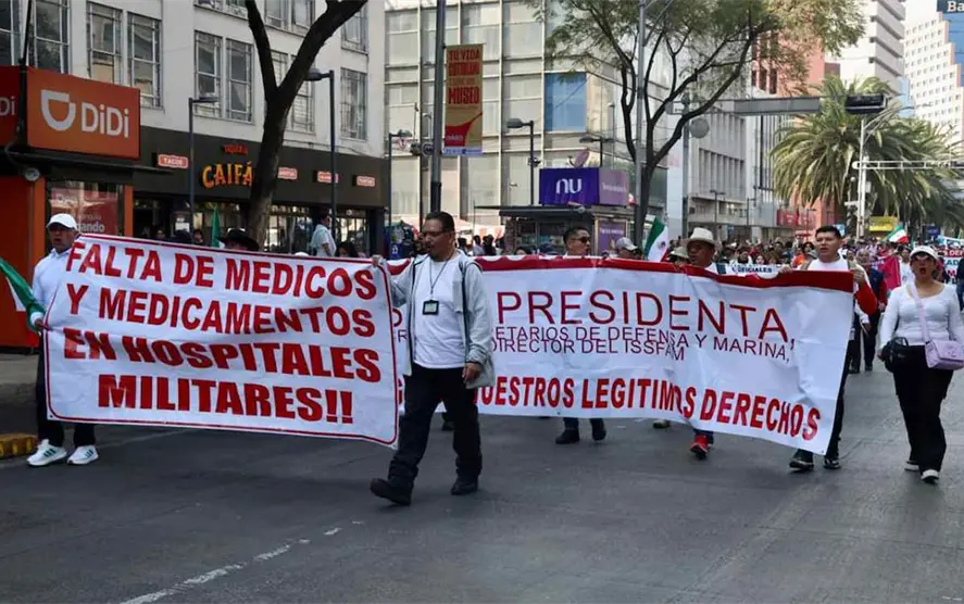 Desde las 11:00 horas, los manifestantes se concentraron en Paseo de la Reforma para dirigirse a Palacio Nacional, donde entregaron un pliego petitorio con sus demandas, como el mejoramiento de hospitales y el abasto de medicamento para personal militar, la entrega de pensiones completas a viudas y huérfanos, entre otras.