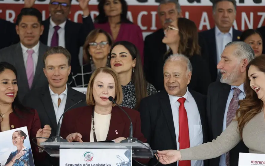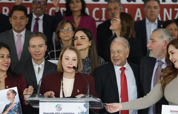 Acompañada de quienes integran la mayoría legislativa, recordó que el propósito de este cambio es promover políticas públicas justas e incluyentes y transformar de raíz las instituciones, pero, sobre todo impulsar una verdadera revolución de las conciencias que ponga en el centro la justicia social, la soberanía nacional y la dignidad del pueblo de México.