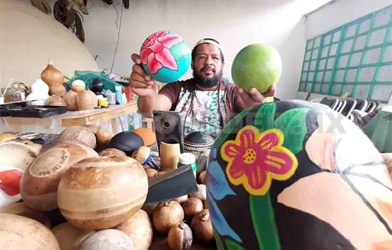 Este artesano ha investigado a profundidad el fruto, sus usos y propiedades, así que de memoria se sabe los nombres científicos de las dos variedades: Crescentia alata y Crescentia cujete. En la parte baja de la planicie zapoteca se conocen como morro jícara (las grandes) y morro llano (las pequeñas de cuatro a cinco centímetros).
