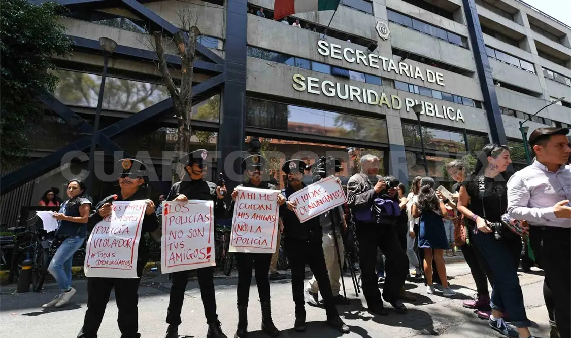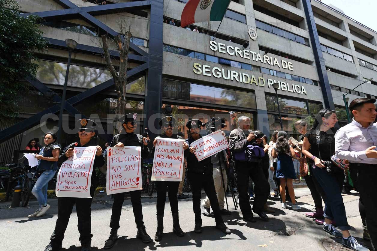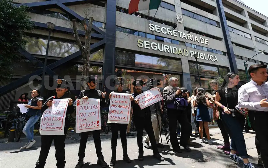 Cerca de 300 mujeres, integrantes de varios colectivos feministas, protestaron frente a las instalaciones de la Secretaría de Seguridad Ciudadana para exigir castigo contra los cuatro presuntos elementos de la corporación que en días pasados fueron señalados por una menor de violación en Azcapotzalco.