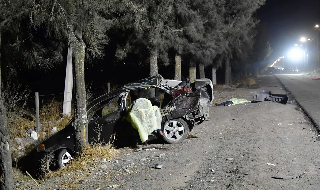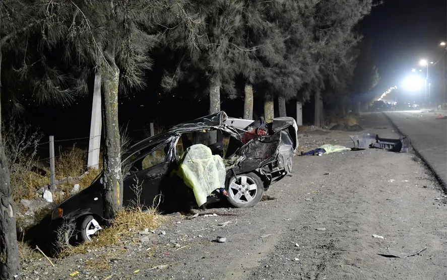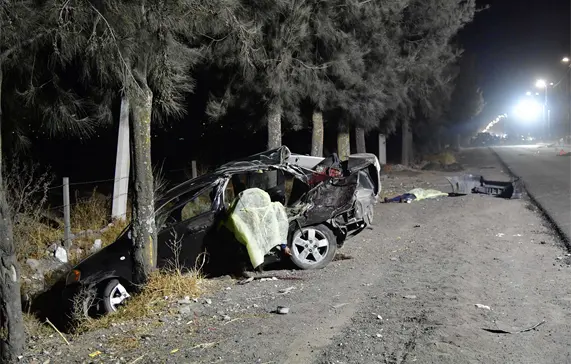 El accidente ocurrió alrededor de las 5:30 de la tarde de ayer cuando el Pontiac G3 -placas SNM7259- en el que viajaban los adolescentes, volcó varios metros y terminó estrellándose contra un árbol.