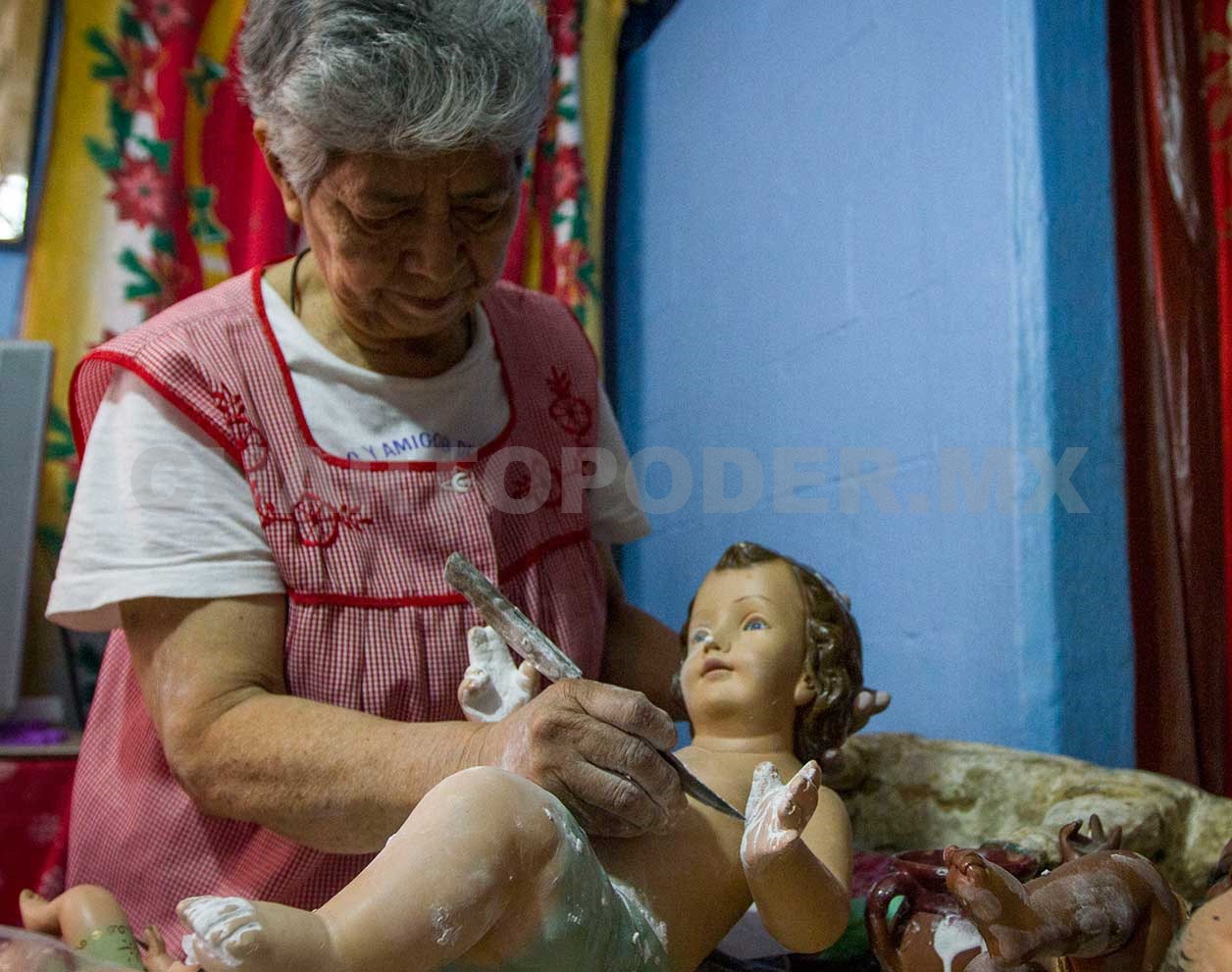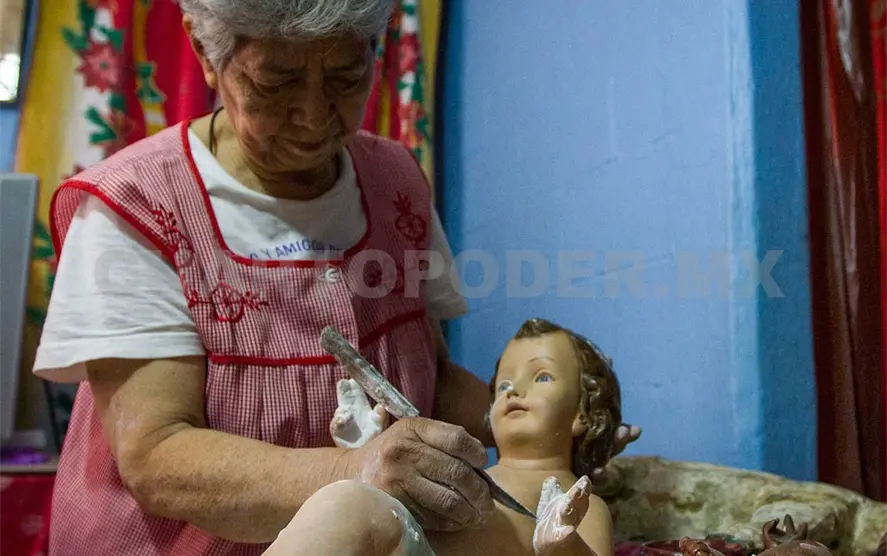 A la reducida vivienda de un primer piso, en una vecindad del barrio de Tepito, en el centro de la Ciudad de México, escondida entre cientos de puestos ambulantes, cada vez menos personas llevan a reparar sus figuras de Niño Dios con doña Gloria García García.