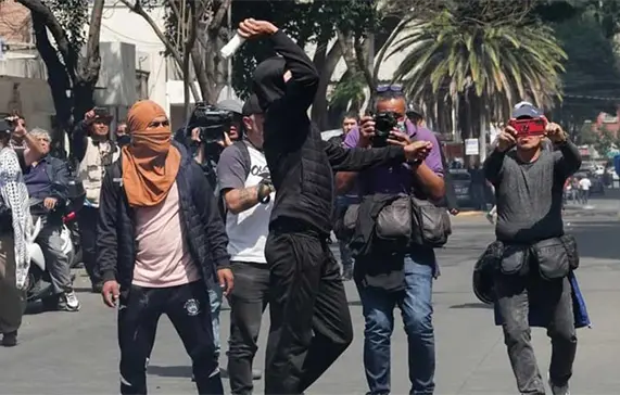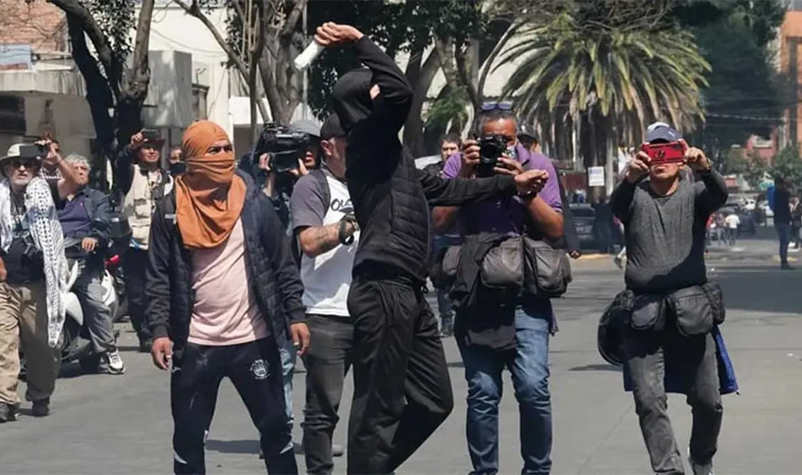 Un contingente integrado por familiares y alumnos de los 43 normalistas de Ayotzinapa desaparecidos, lanzó petardos contra el edificio principal del Senado de la República.