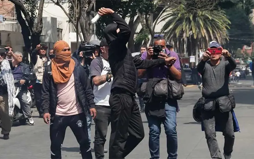 Previamente el contingente pidió hablar con una comisión de senadores y entregó un oficio, pero no recibieron respuesta positiva por lo que al retirarse lanzaron los petardos.