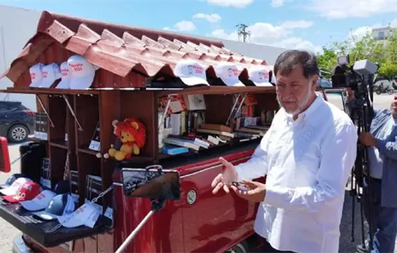 El petista detalló que el vehículo es una combi cuya parte trasera fue adaptada para albergar una minibiblioteca, en donde regala libros de su autoría.
