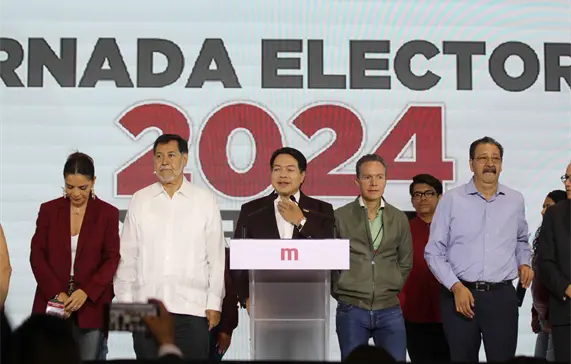 En el “búnker de Morena”, ubicado en el Hotel Hilton, donde también se encuentra la candidata presidencial Claudia Sheinbaum, Mario Delgado dijo que acuerdo con encuestas de salida contratadas por el partido, dan el triunfo para la Jefatura de Gobierno con Clara Brugada; también en Jalisco con Claudia Delgadillo; en Veracruz con Rocío Nahle; Joaquín Mena Diaz para Yucatán.