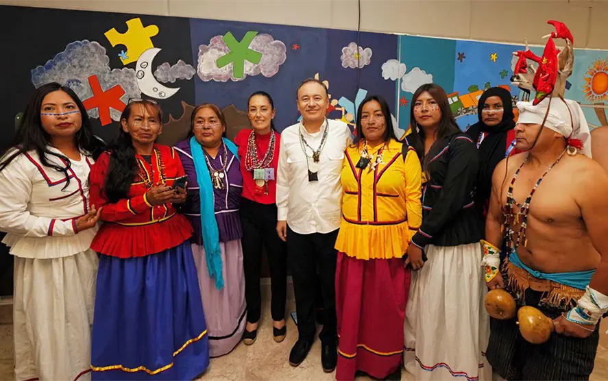Al ritmo de la batucada, los sonorenses mostraron su apoyo hacia Sheinbaum Pardo con abrazos, aplausos, porras en las que se coreaban distintas consignas como “¡Presidenta, presidenta!”, así como pancartas en las que se leían mensajes como “Mujeres al 100 con Claudia”, “Todos somos Claudia”, entre otros que decoraban el recinto a la par de imágenes de su silueta con sombreros regios, así como formando un corazón con las manos.