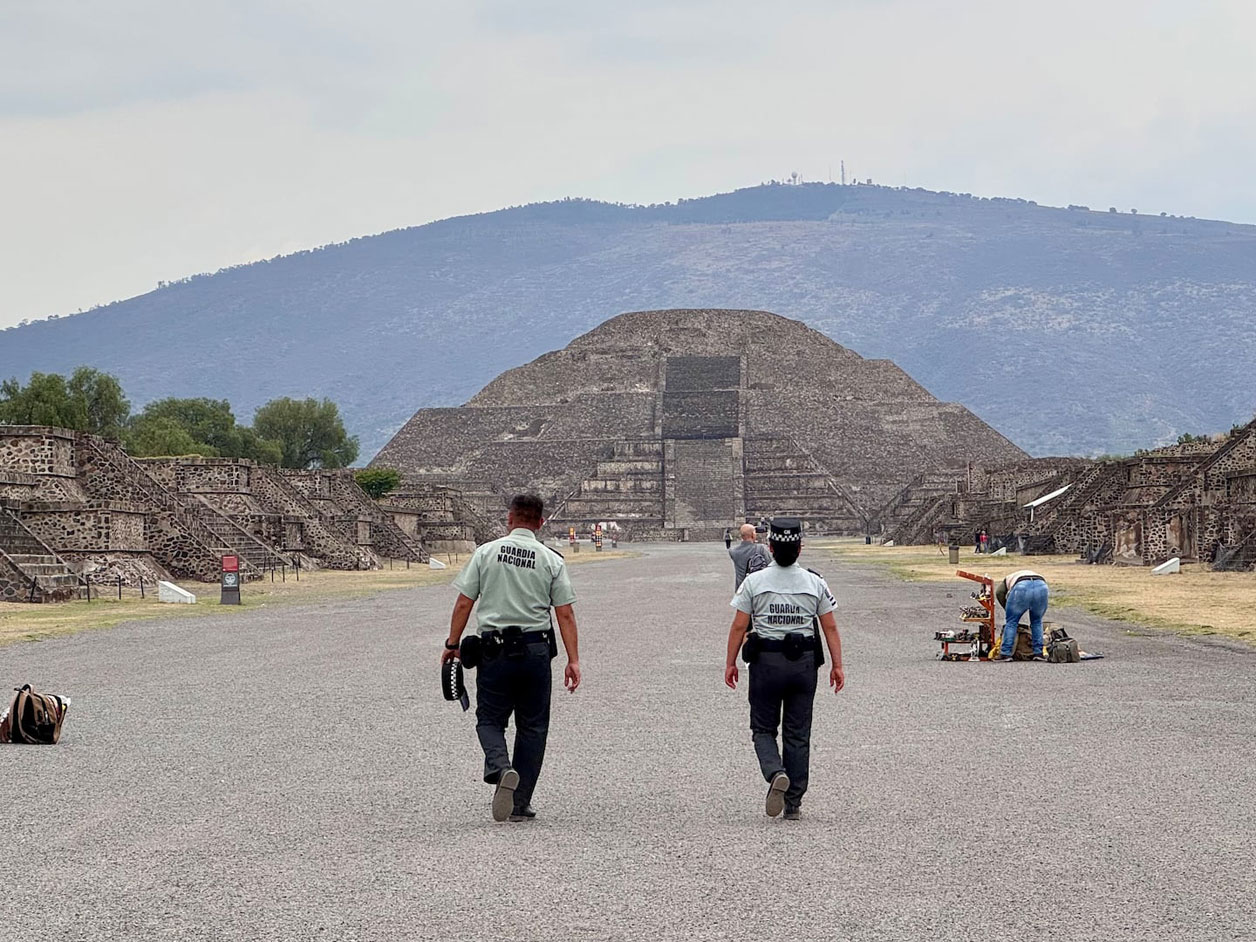 Autoridades de la zona arqueológica de Teotihuacán implementaron ayer domingo un nuevo dispositivo de seguridad con la instalación de cinco arcos detectores de metales, uno en cada acceso, luego de que Julio César realizara disparos desde la Pirámide de la Luna el pasado 20 de abril, y mató a una turista canadiense e hirió a 13 más y él, luego, se suicidó.