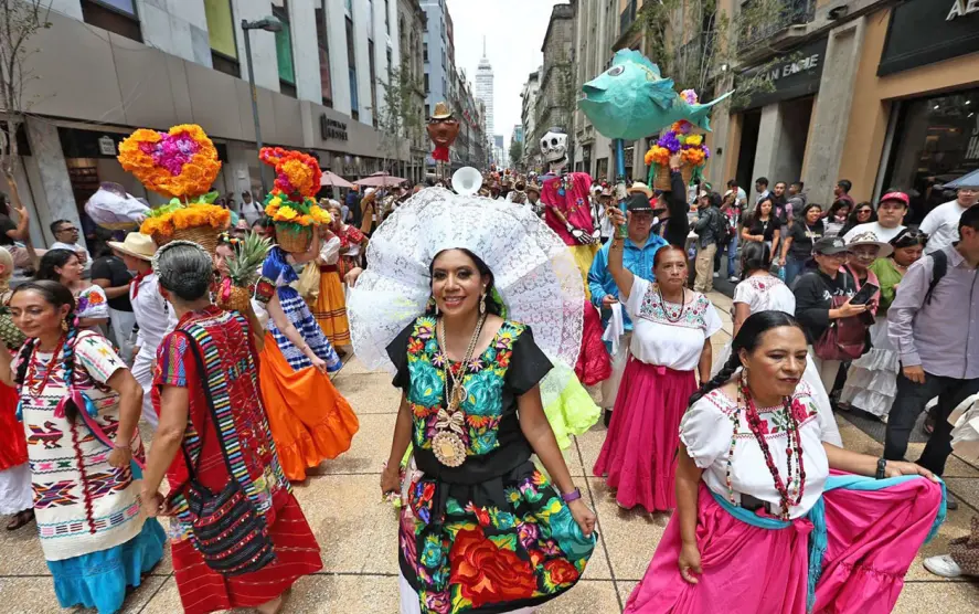 Para cerrar con broche de oro la XI Fiesta de las Culturas Indígenas, Pueblos y Barrios Originarios de la Ciudad de México 2025, dio inicio una Calenda, o fiesta oaxaqueña que llegó al Zócalo capitalino.