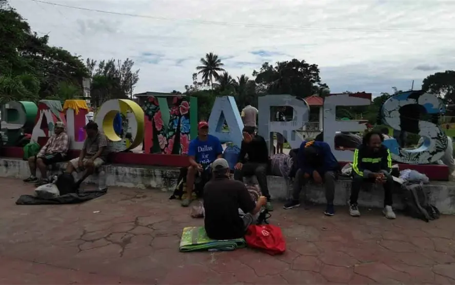 Juchitán, Oaxaca.- La caravana de migrantes centroamericanos que transita desde el pasado 7 de noviembre por territorio oaxaqueño llegó esta mañana a la comunidad de Palomares, caminando desde Piedra Blanca, perteneciente al municipio de San Juan Guichicovi, para descansar en el parque central.