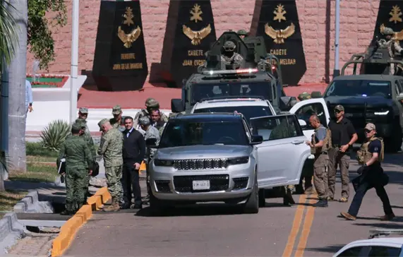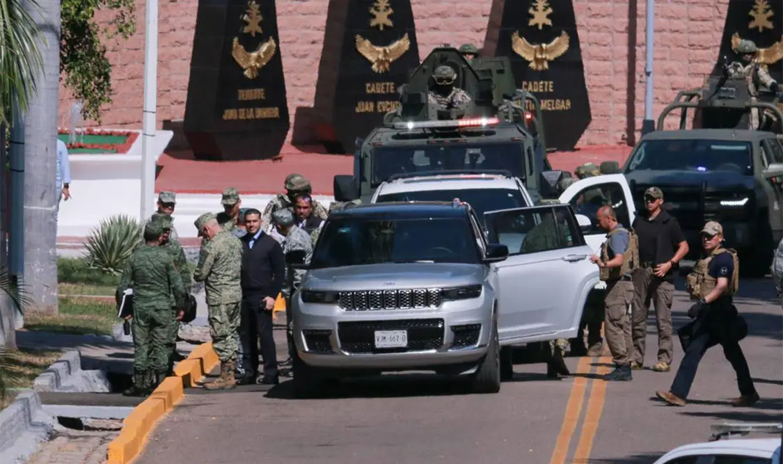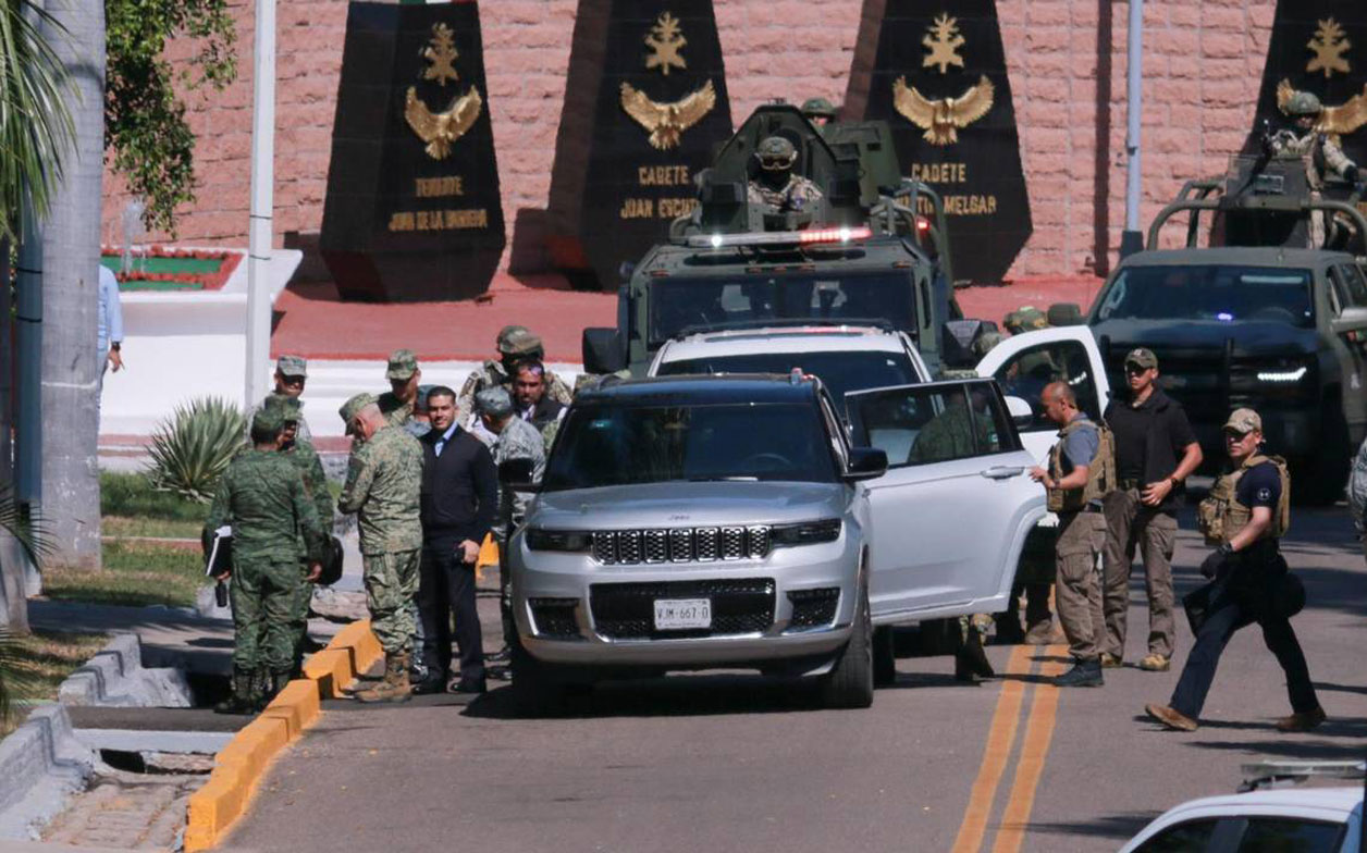 En las instalaciones de la Novena Zona Militar, se reúnieron en privado, el gobernador del estado, Rubén Rocha Moya y los miembros del Gabinete de Seguridad Federal que encabeza el secretario de la Defensa Nacional, general, Ricardo Trevilla Trejo y el secretario de Seguridad, los cuales arribaron bajo extrema seguridad.