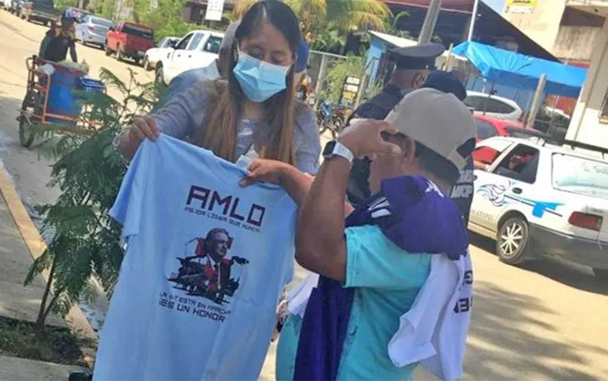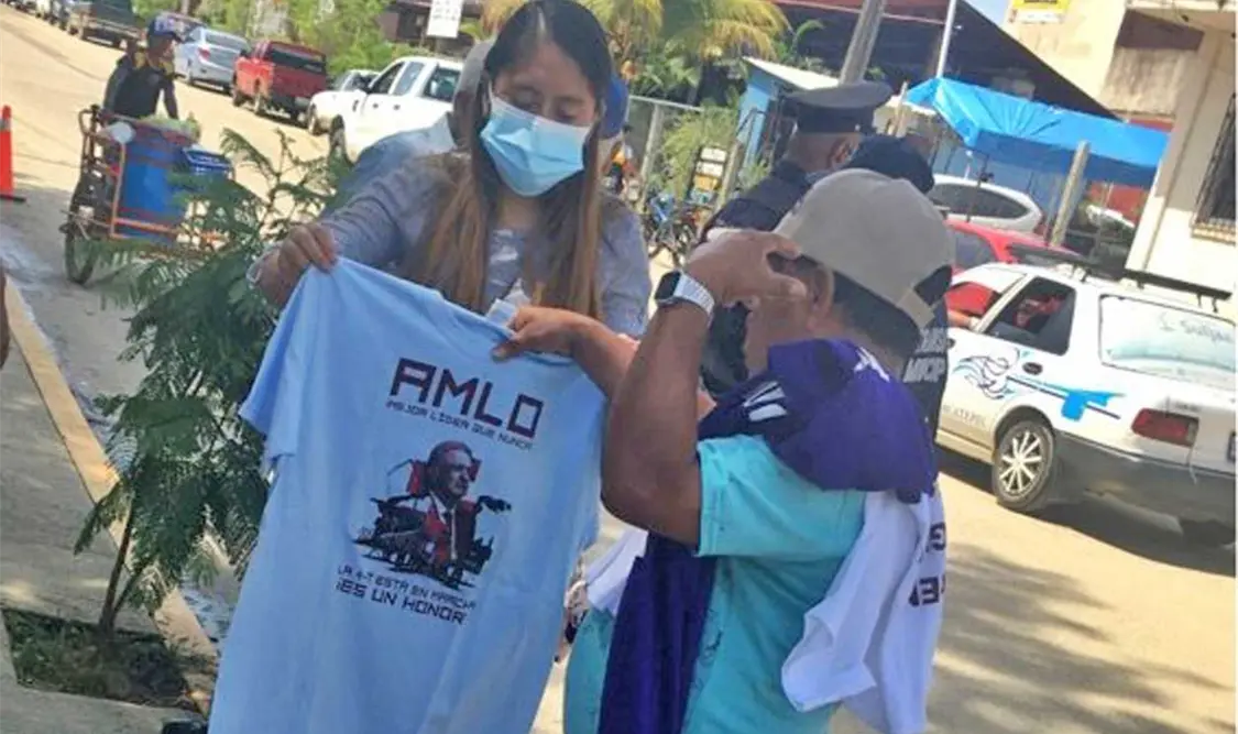 Luisa, quien esperaba ver al presidente en su visita que hizo a Ometepec, llegó al puesto instalado en la banqueta afuera del Instituto Tecnológico Superior de la Costa Chica, en busca de la playera de “el Mesías”.