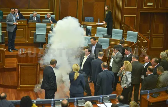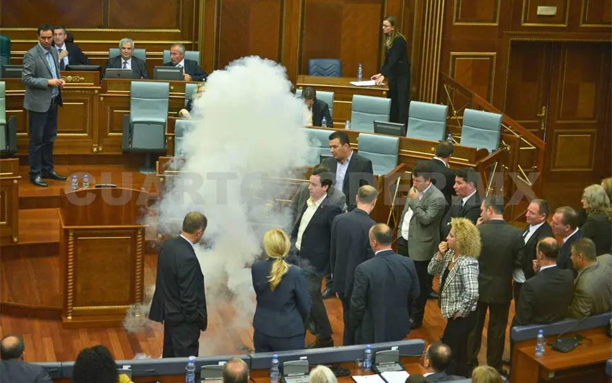 Diputados opositores lanzaron gases lacrimógenos en la sesión del Parlamento de Kosovo, en protesta al respaldo de los legisladores al acuerdo mediado por la Unión Europea (UE) para reanudar las relaciones entre Serbia y la exprovincia.