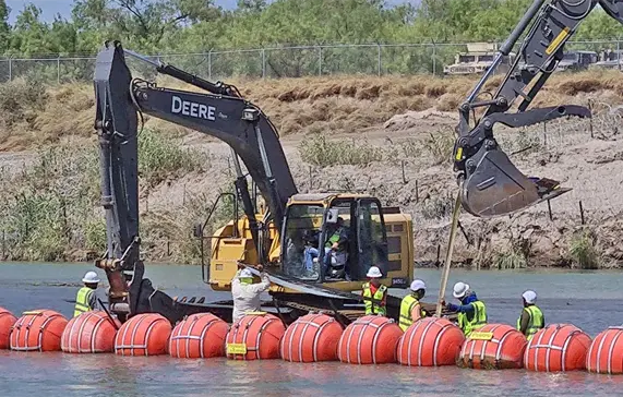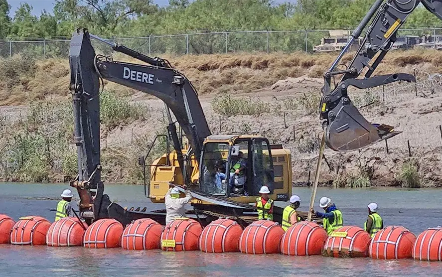 Decenas de boyas de color naranja brillante del tamaño de una bola de demolición han creado una barrera de agua más larga que un campo de futbol, en un tramo del río por el que los inmigrantes suelen intentar cruzar desde México. Texas también ha instalado alambre de púas y vallas de acero en la frontera, además ha facultado a agentes armados para detener a los migrantes con cargos de invasión de propiedad privada.