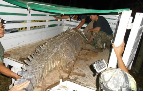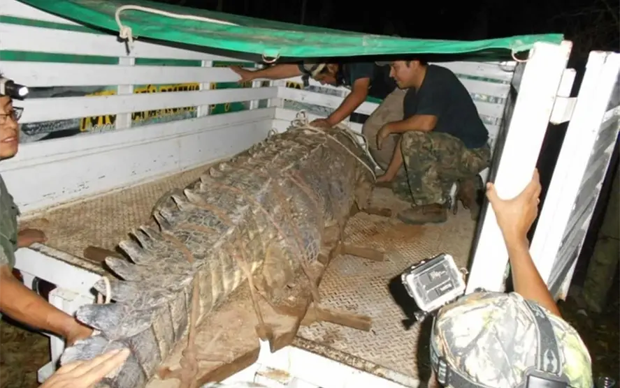 El reptil fue rescatado en la Reserva de la Biósfera “La Encrucijada”, en la comunidad Los Mangos, municipio de Tonalá, Chiapas, para evitar que pobladores le hicieran daño, debido a que había devorado animales domésticos y de corral.