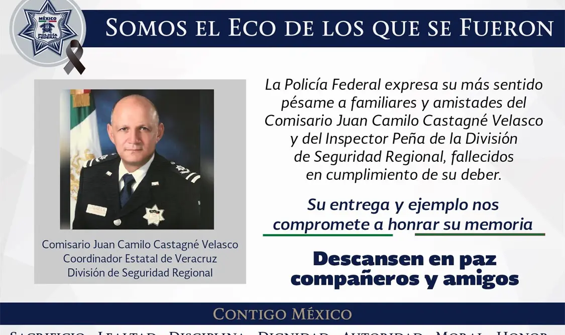 Un comando asesinó la tarde de ayer al comisionado de la Policía Federal, Camilo Juan Castagné, cuando se encontraba en un restaurante de la localidad de Cardel, en el municipio de La Antigua. En el ataque también falleció un inspector y otro fue herido de bala.