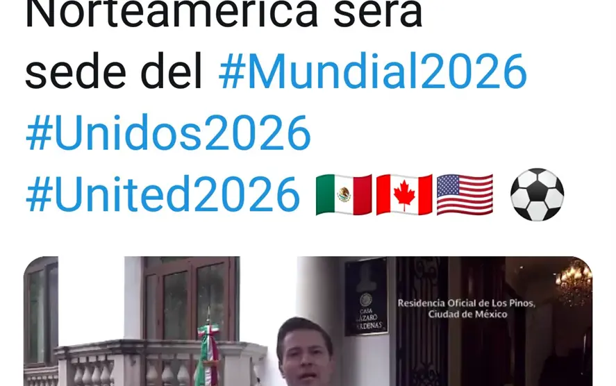 En un video difundido en su cuenta de Twitter @EPN, indicó que la decisión de la Federación Internacional de Fútbol Asociación (FIFA) es un reconocimiento a los tres países y un voto de confianza a la capacidad de organización, a la calidad de la infraestructura y a los servicios que México ofrece.