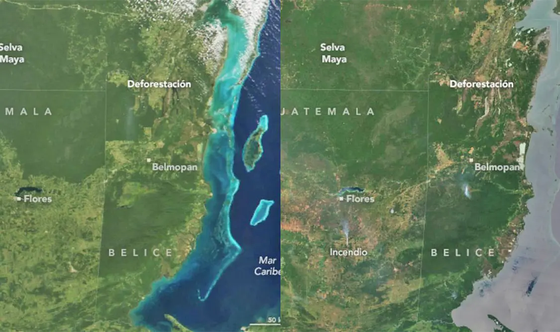 En los últimos 20 años, la NASA se encargó de capturar la evolución de los bosques tropicales que se extienden a lo largo de la Selva Maya, expansión que ha reducido drásticamente por diferentes factores antropocentristas, como lo es la ganadería, la tala de árboles y actividades ilegales; el cambio ha sido documentado a través de imágenes satelitales que han causado sorpresa, debido a la escasa cobertura forestal que cubre a la zona en la actualidad.