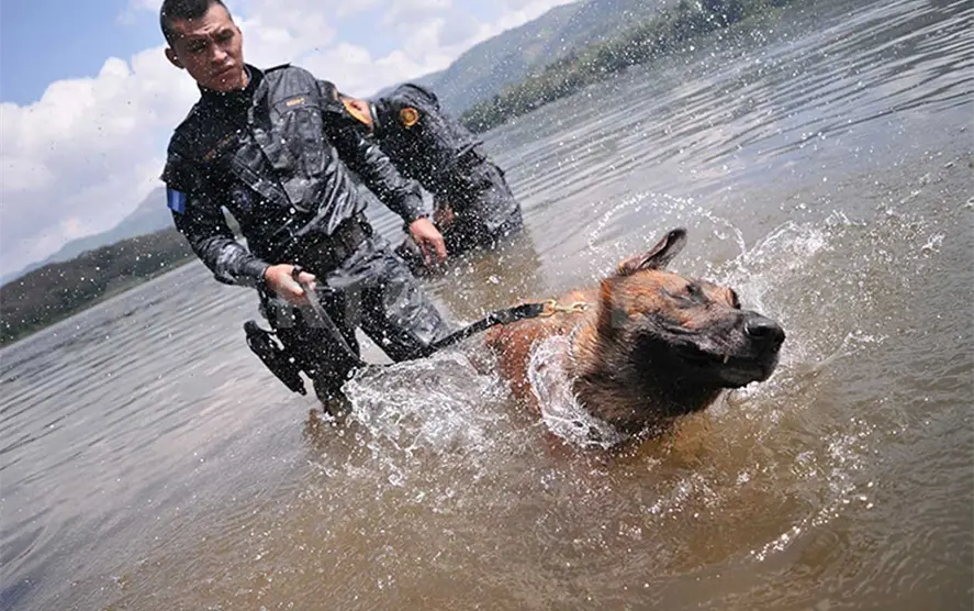 Mejor conocidos como K-9, los perros entrenados en las tareas de seguridad forman junto con agentes antinarcóticos de la Policía Nacional Civil (PNC) de Guatemala los denominados “binomios caninos”. Ntx