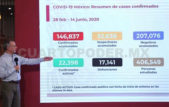 México llegó, al corte de este 14 de mayo, a 17 mil 141 muertes por Covid-19, con 146 mil 837 casos de contagios confirmados de coronavirus, según informaron autoridades de la Secretaría de Salud.