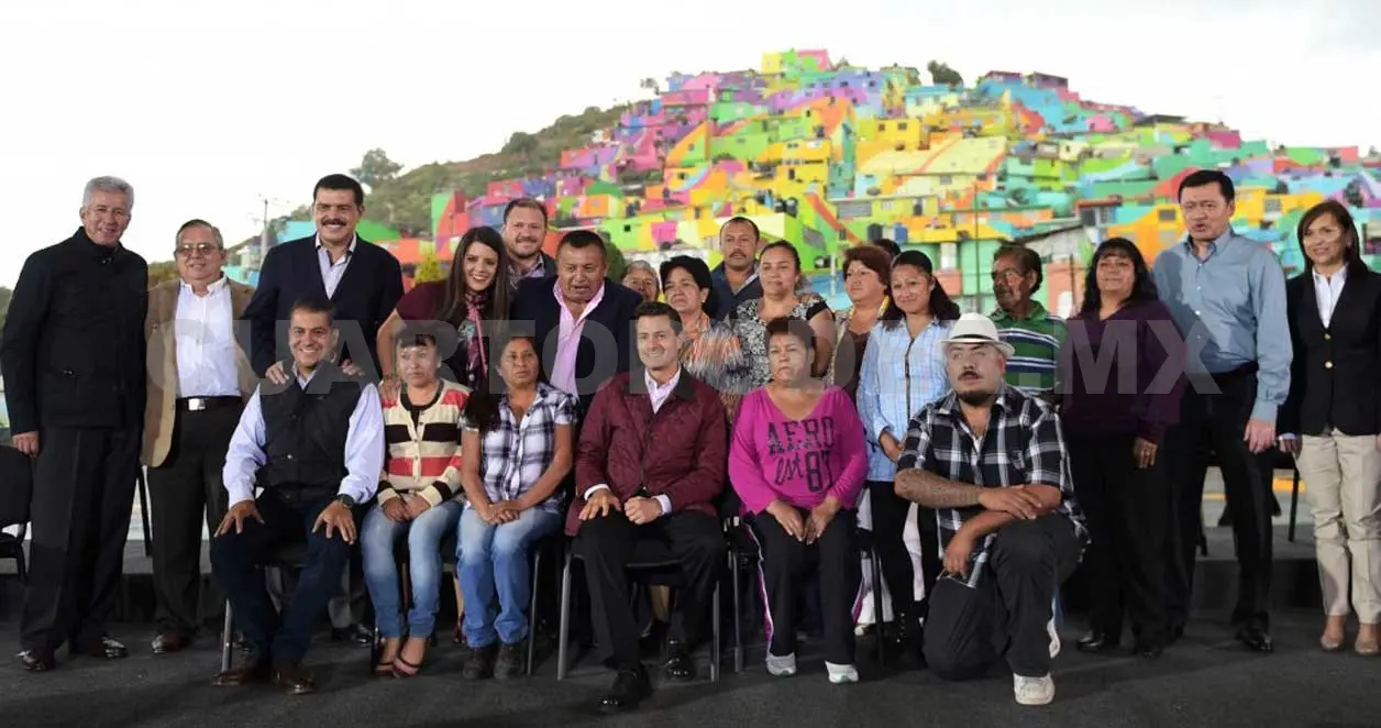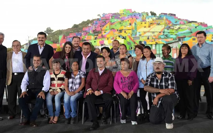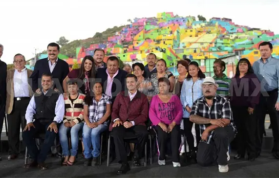 Resaltó que acciones como este mural, pintado en fachadas de las casas de la colonia Palmitas, en un cerro de esta capital, permiten a la comunidad participar en acciones productivas de embellecimiento y de prevención integral de la violencia y la delincuencia.
