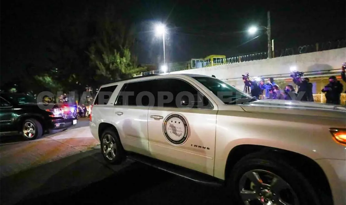 El avión que lo trajo de regreso a México aterrizó a las 00:44 de este viernes pero las puertas del hangar se abrieron hasta las 03:58, para dar salida a un convoy compuesto de siete camionetas, dos motocicletas y una patrulla.