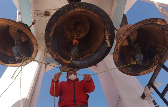 Mientras la gente estaba en confinamiento, desde sus casas podían escuchar el sonido que da a conocer el luto. Desde hace ocho años, Lino Peña Nova trabaja en la parroquia de San Miguel Arcángel que está en el municipio de San Mateo Atenco, en el Estado de México. Mientras estuvo cerrado el templo, él se quedó a resguardar el lugar. Durante la pandemia, Lino ha tenido que doblar las campanas para despedir a familiares y amigos.