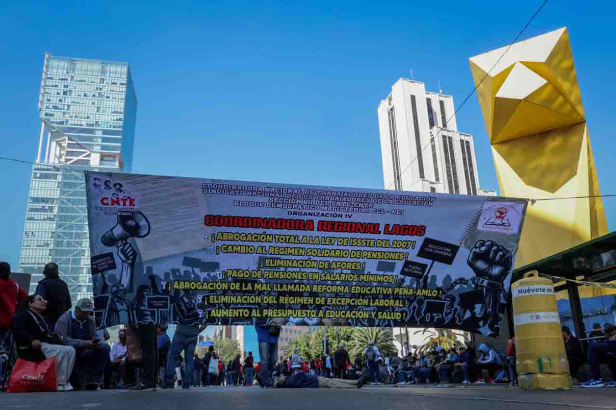 Los docentes insistieron en la necesidad de que se reduzca la edad para la jubilación y exigieron que se instale una mesa de diálogo con la presidenta Sheinbaum Pardo y la Comisión Negociadora de la Coordinadora Nacional de Trabajadores de la Educación (CNTE).
