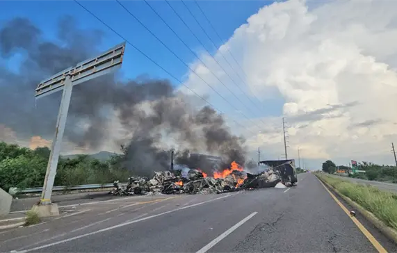 Este bloqueo que realizó el grupo armado en la carretera federal número 15 con unidades en llamas obstaculizó la movilización de refuerzos al personal del ejercito que se enfrentó a este grupo delictivo, por lo que tuvieron que movilizar al cuerpo de bomberos para apagarlos y poder retirarlos.