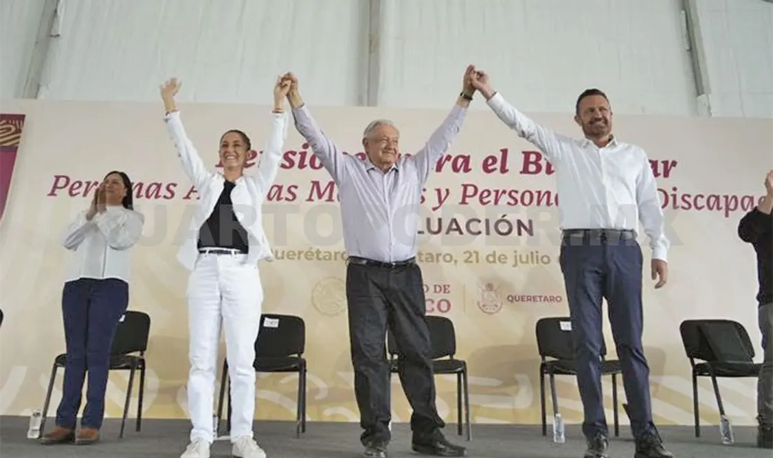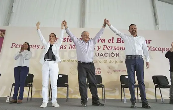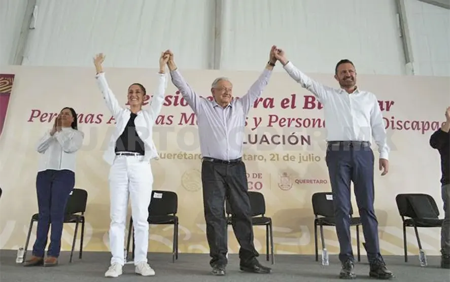 “Quiero hoy anunciarles algo que he venido platicando en estas giras con el presidente, que tenía yo la idea desde hace tiempo —y además también ha sido una idea del presidente Andrés Manuel López Obrador—, es un programa especial para todas las adultas y adultos mayores; no solamente es la pensión, sino que además ahora vamos a llevar a médicos, médicas, enfermeros, enfermeras a la casa de cada uno de ustedes”, agregó al recibir el respaldo de los queretanos presentes al grito de “es un honor estar con Claudia hoy”.