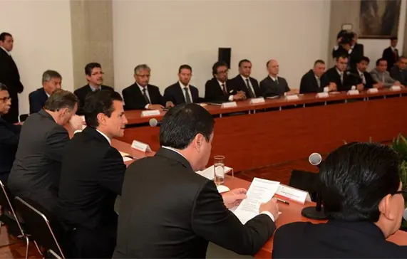 En el encuentro estuvieron presentes los secretarios de Gobernación, Miguel Ángel Osorio Chong; de Hacienda y Crédito Público, José Antonio Meade; el subsecretario de Población, Migración y Asuntos Religiosos de la Secretaría Gobernación, Humberto Roque Villanueva, y el jefe de la Oficina de la Presidencia, Francisco Guzmán Ortiz.