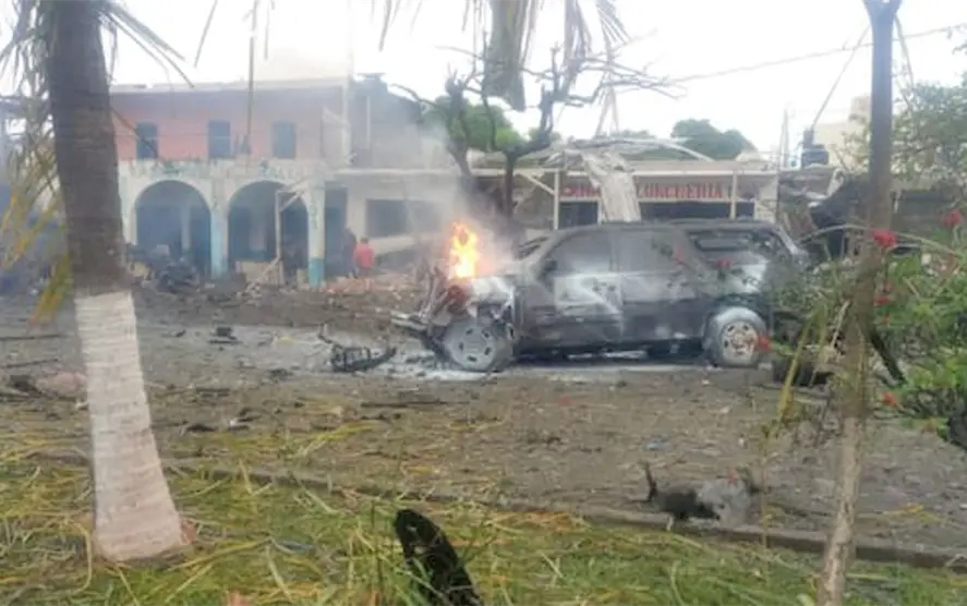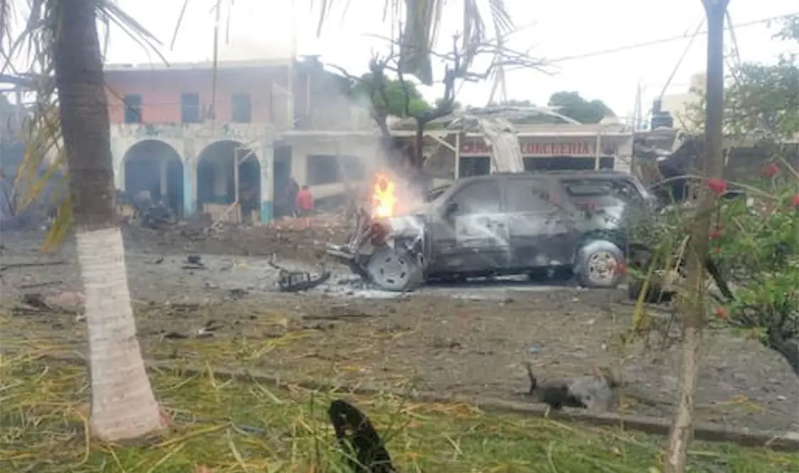 Minutos antes de las 12 horas, el estruendo hizo temblar la tierra, estalló el coche bomba afuera de la base de la Policía Comunitaria, frente a la presidencia municipal.
