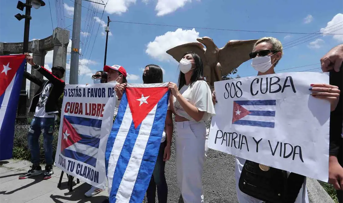 Integrantes de la comunidad cubana radicados en Toluca, Estado de México, salieron alas calles a gritar consignas de apoyo a sus compatriotas y en contra del régimen de Miguel Díaz-Canel, presidente de Cuba. El Universal