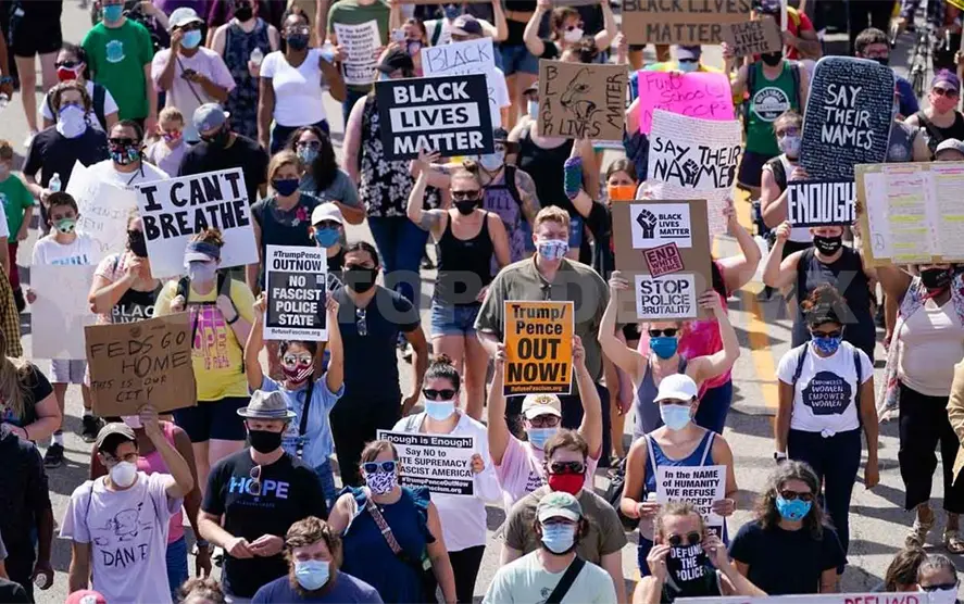 Los manifestantes llevaban pancartas, mascarillas y camisetas con el lema de “Black Lives Matter” (Las vidas negras importan).