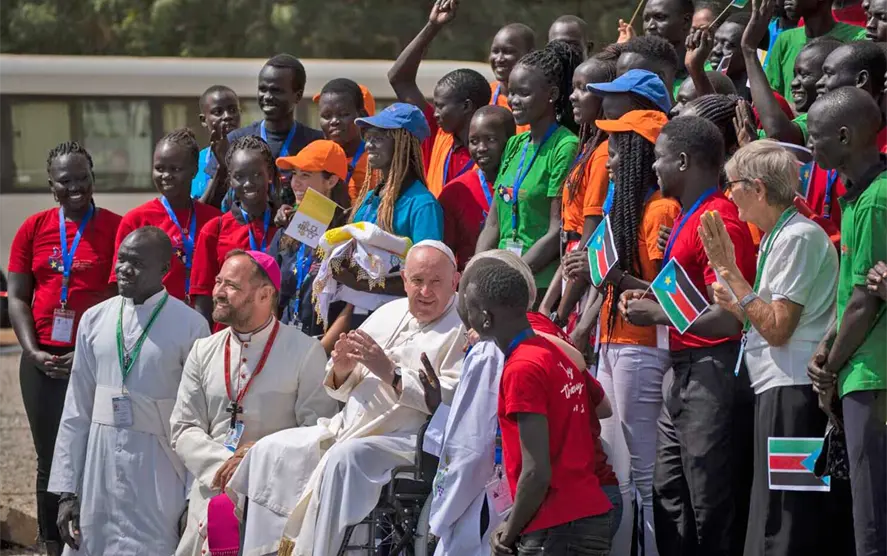 En este encuentro en el que participaron cerca 50 mil personas en el Mausoleo John Garang, dedicado al histórico dirigente sursudanés, en Yuba, ante los otros líderes cristianos que le acompañan en esta etapa del viaje en África afirmó: “Los que se llaman cristianos deben elegir bando. Quien sigue a Cristo elige la paz, siempre; quien desata la guerra y la violencia traiciona al Señor y niega su evangelio”.