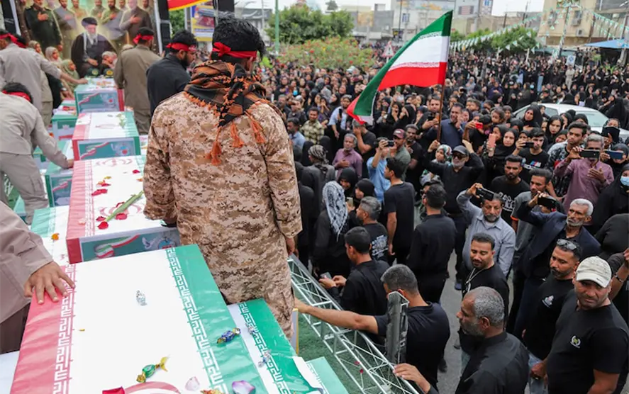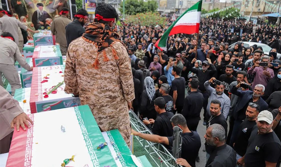 El funeral y la ceremonia de entierro de las víctimas mortales del ataque fue en la plaza de los Mártires de la ciudad de Minab.